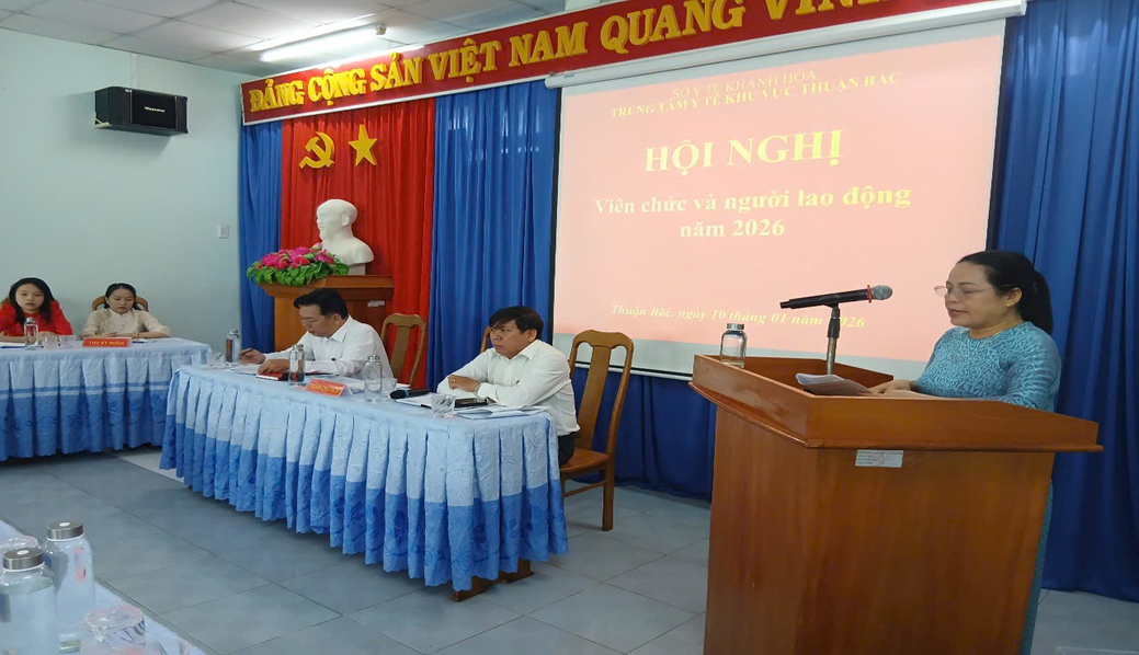 Hội nghị CBVC & NLĐ năm 2026 của Trung tâm Y tế khu vực Thuận Bắc kết thúc trong không khí thống nhất cao với quyết tâm thực hiện thắng lợi các nhiệm vụ đề ra. Toàn thể cán bộ, viên chức và người lao động cam kết đồng lòng, phát huy tinh thần trách nhiệm, sáng tạo, góp phần nâng cao chất lượng chăm sóc sức khỏe cho nhân dân trên địa bàn.