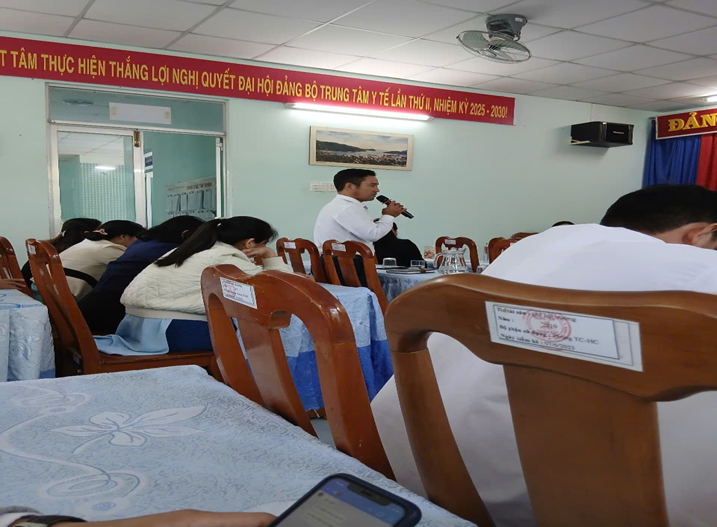 BSCKI. Ông Dương Tấn Khoán Phó giám đốc TTYT Báo cáo quy chế thi đua, khen thưởng,